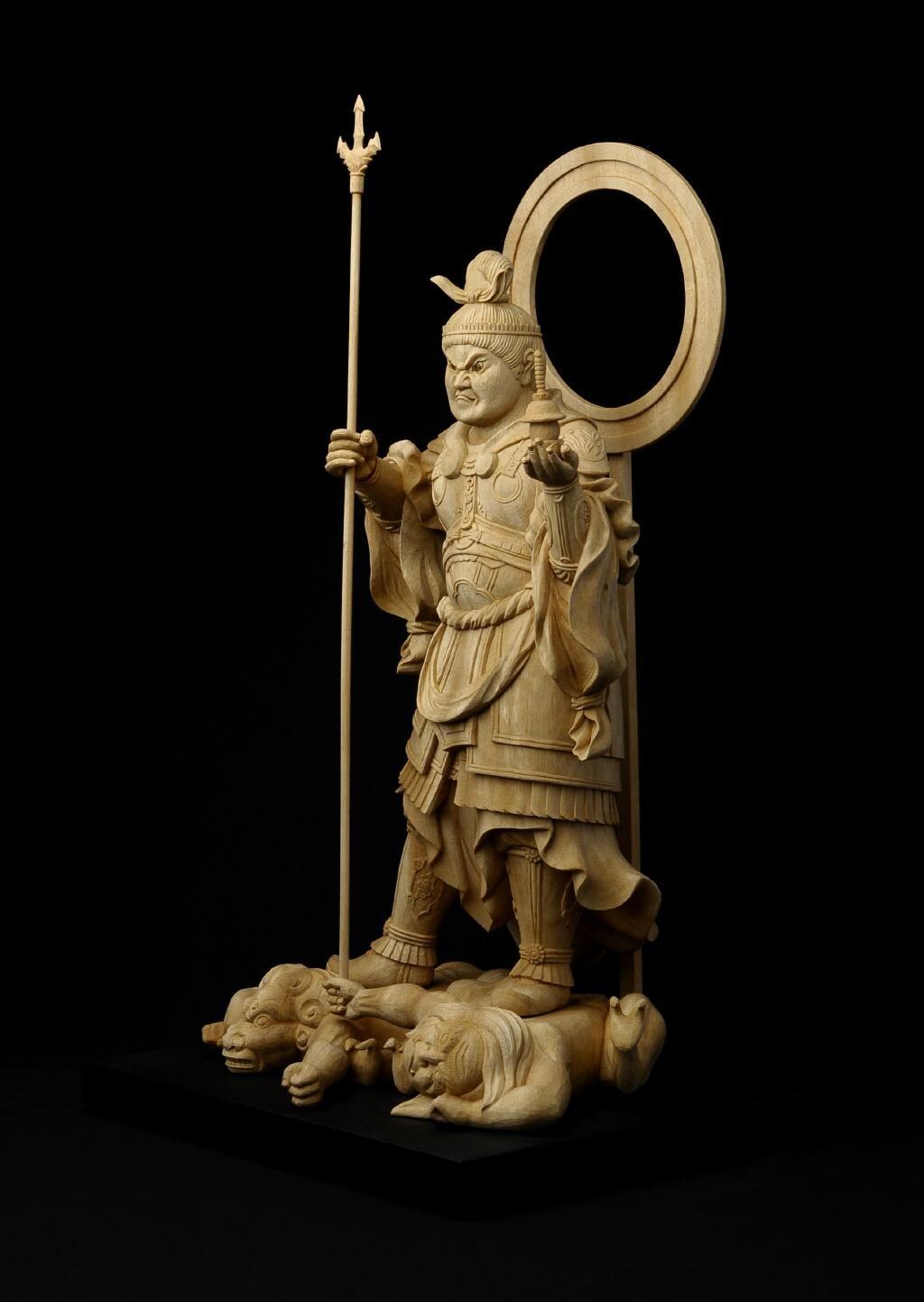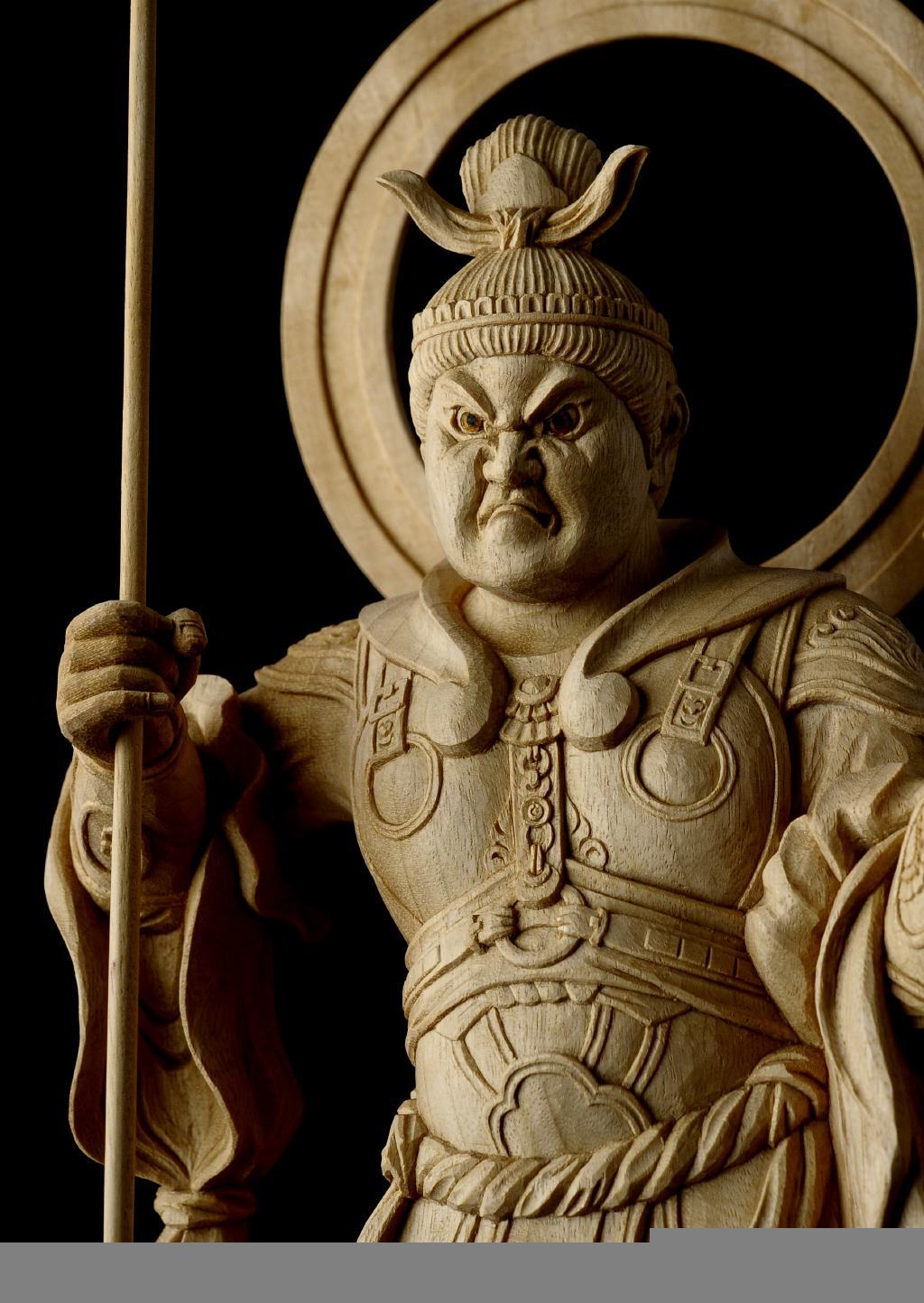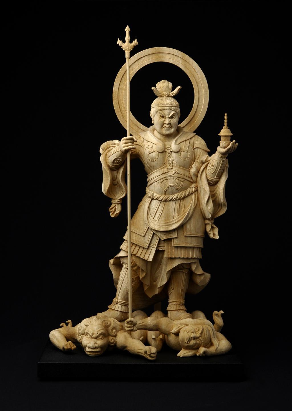 Inspired by the celebrated Bishamonten traditionally attributed to the Kamakura-period master Unkei, this work is not a reproduction, but a modern reinterpretation that studies Unkei-style tension, volume, and intensity through Ishihara’s own proportions and expression.
