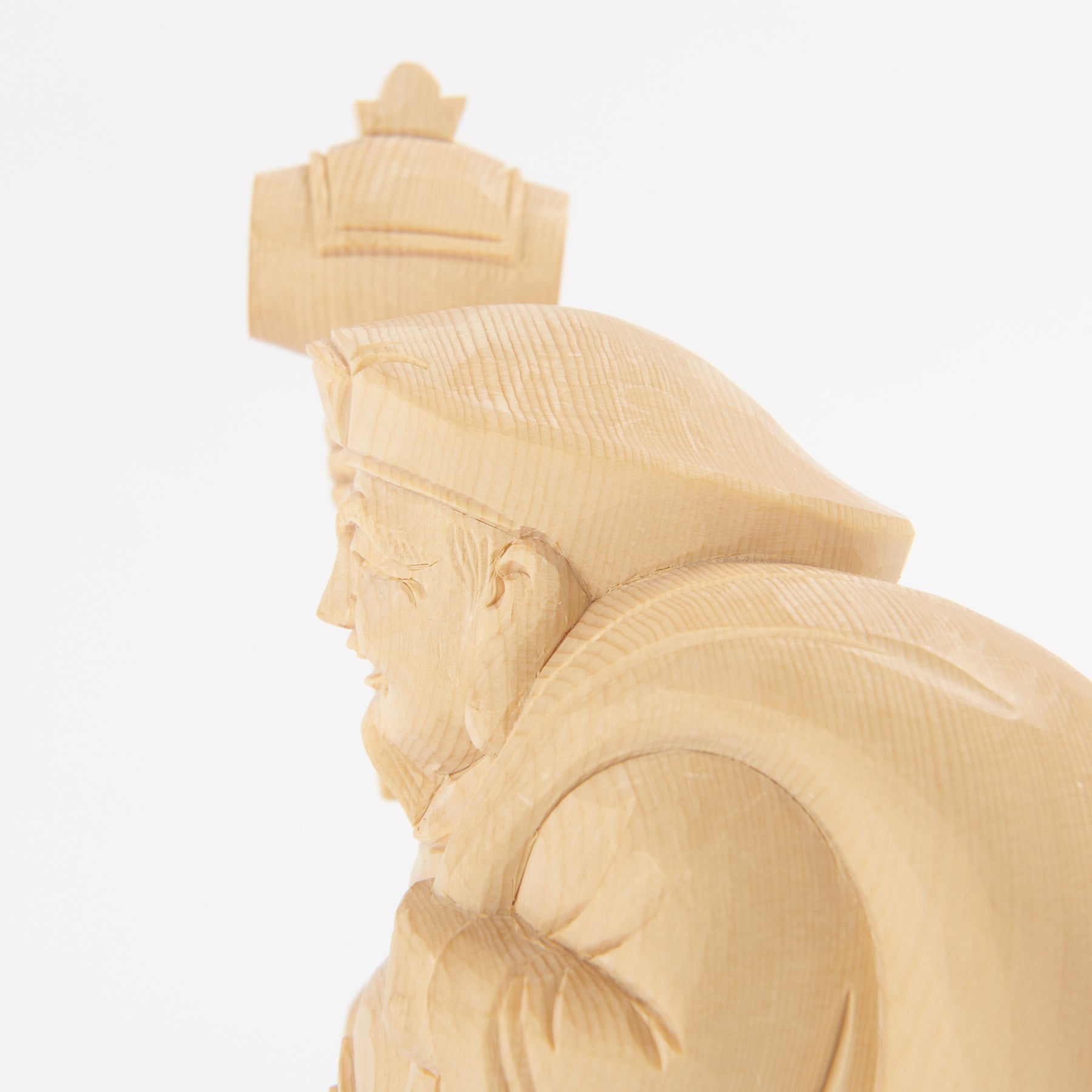 Daikokuten — Nihyo Daikoku is a calm, grounded figure of Daikokuten standing atop two rice bales, a form traditionally chosen to express abundance that is secured and sustained.