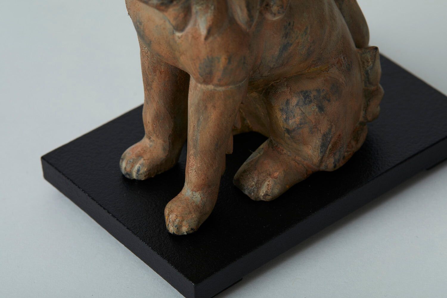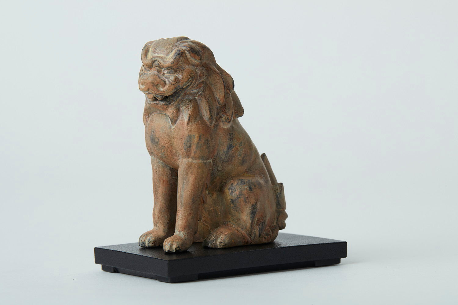 Carved from hinoki wood, this piece follows the established shishi model seen in architectural guardians and decorative carvings, translated into a small-scale object. The form reflects a long lineage of lion-guardian imagery that traveled through Buddhist visual culture along the Silk Road and became a familiar protective motif in Japan. Its simplified surfaces and compact proportions emphasize solidity and restraint—an approach commonly used when the goal is a clear silhouette and a strong presence in a limited space.