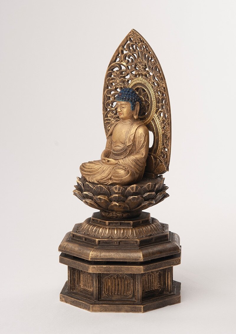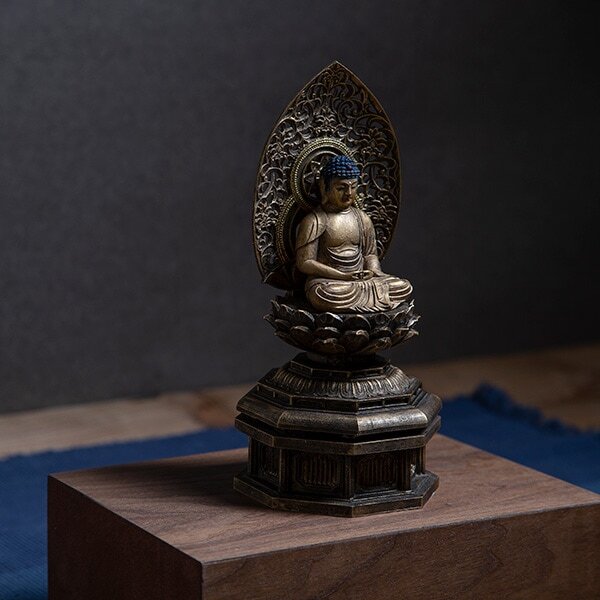 阿弥陀如来は日本では浄土教(浄土宗・浄土真宗など)を中心に篤く信仰され、念仏(名号を称えること)と結びついて親しまれてきた仏さまです。仏像は単なる装飾品というより、手を合わせ心を整えるための「お姿」として大切に扱われます。置き場所は清潔で落ち着くところを選び、目線より少し高めに安置するなど、敬意をもって向き合うのが一般的です。移動やお手入れの際も、乱暴に扱わず、両手で丁寧に取り扱うと安心です。