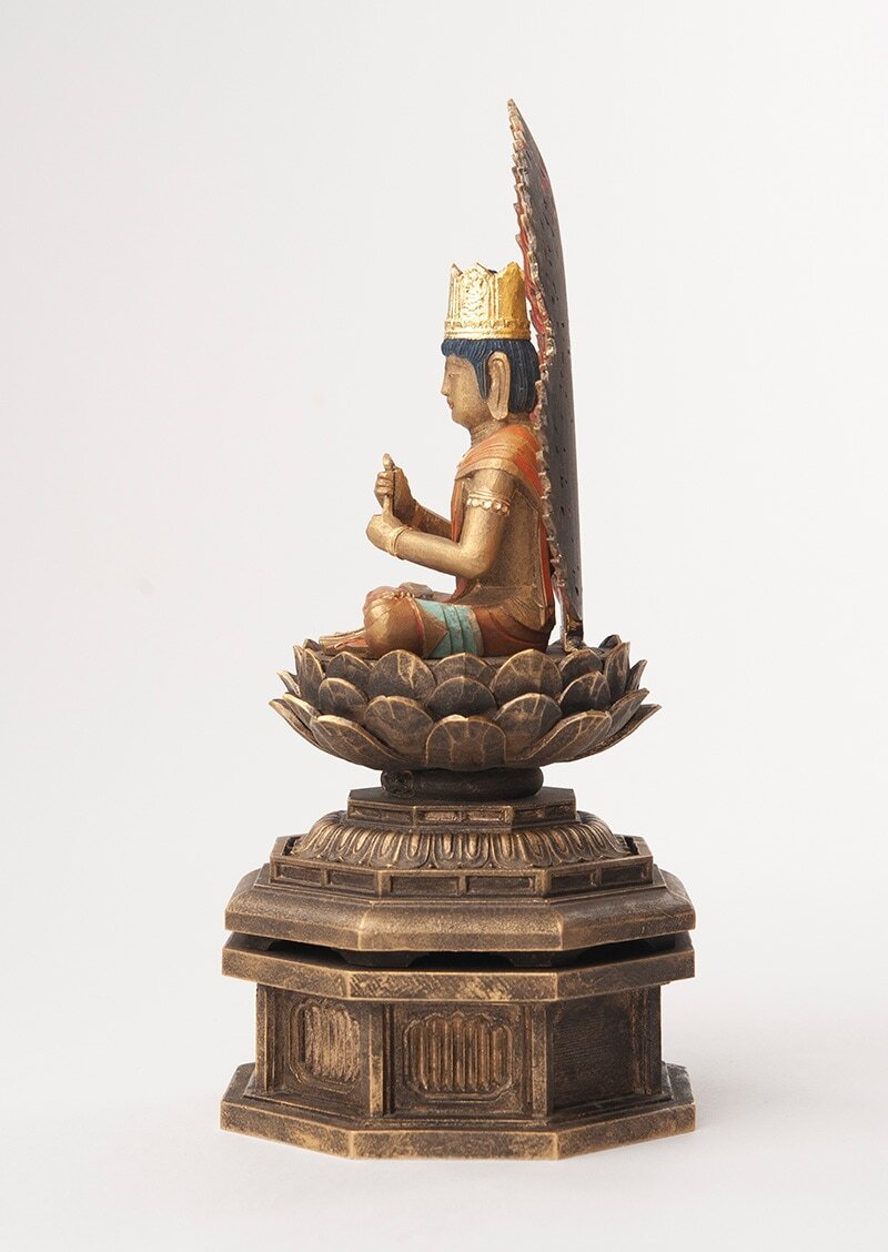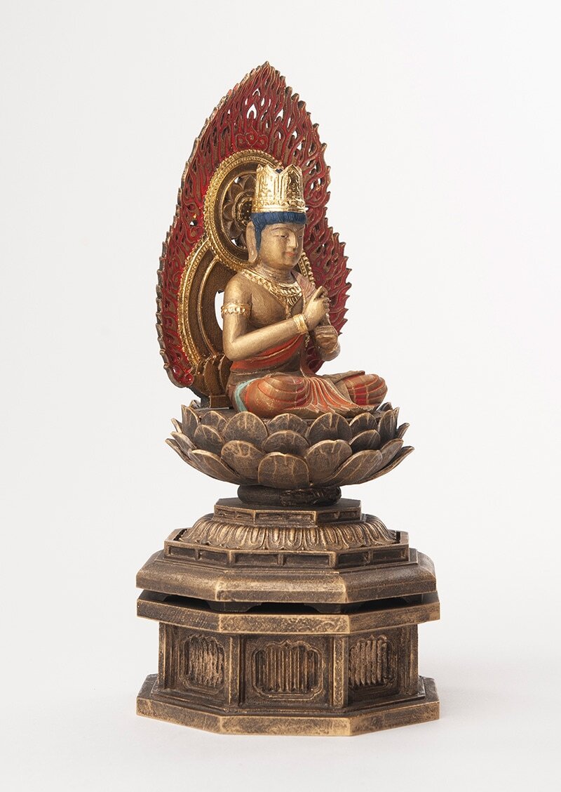 檜材ならではのやわらかな質感と、端正な坐姿が印象的。インテリアとしても、手を合わせる対象としても、過度に主張せず、整った佇まいを大切にした一点です。