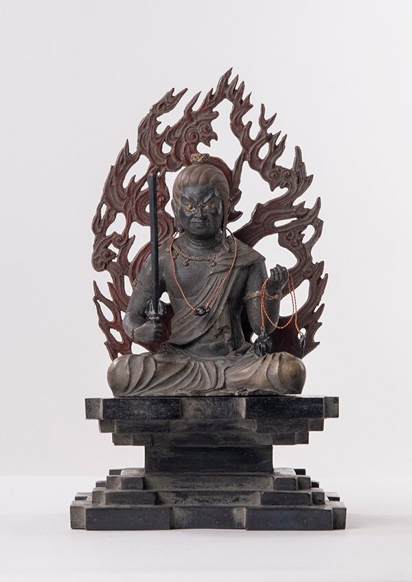In Japan, Fudō Myōō is widely venerated within Esoteric Buddhist traditions as a powerful protector figure who helps people overcome inner obstacles such as greed, anger, and delusion. Images of Fudō are commonly approached as devotional icons: placed with care, kept in a clean and settled space, and handled with a respectful mindset (for example, lifting with both hands and avoiding casual placement on the floor). Many people choose a quiet, slightly elevated spot where the figure can be regarded without distraction, treating it as something to be greeted and maintained rather than used as ordinary décor.